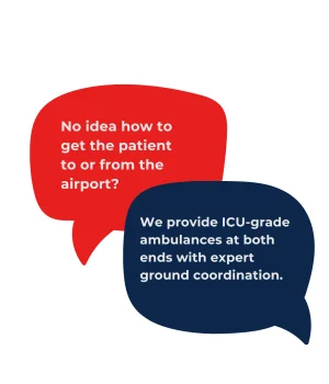 Patients travel with a dedicated ICU doctor/nurse, ensuring monitoring and safety throughout.