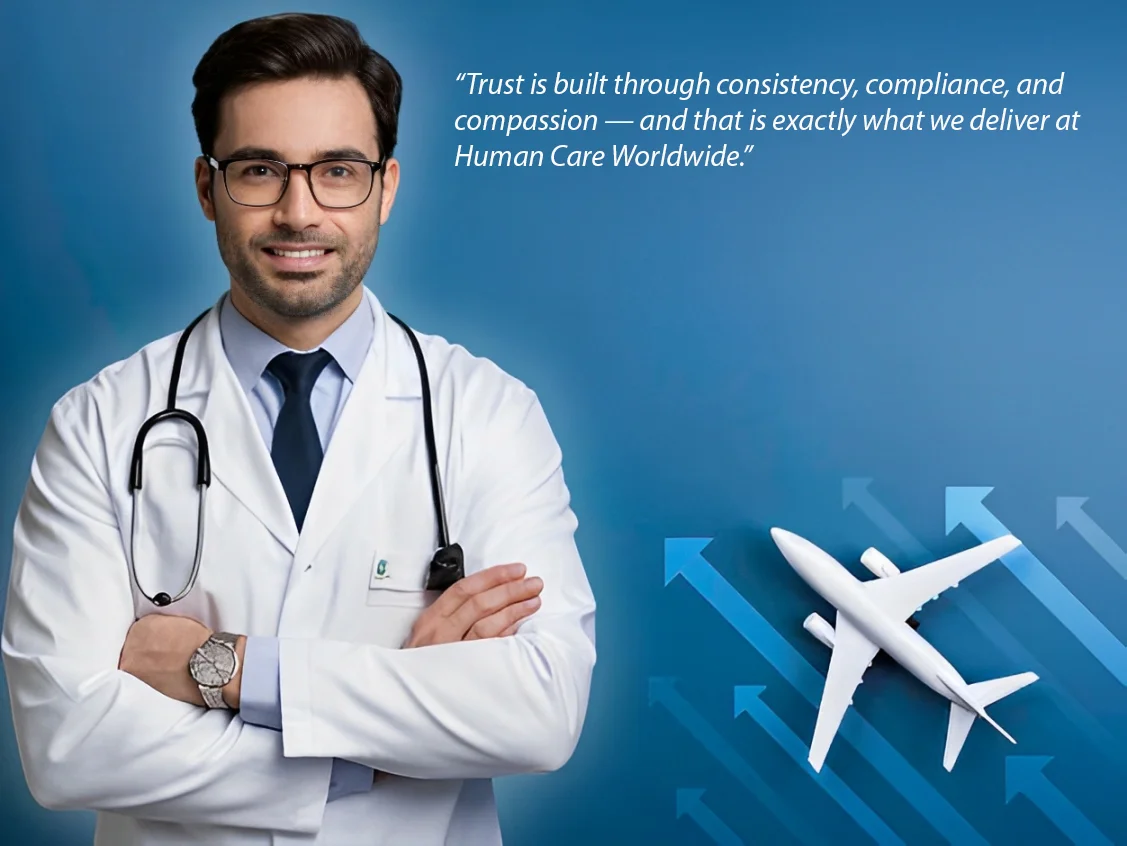 Humancare World Wide ensures patients receive the same standard of care and precision as private air ambulances during transfers.
